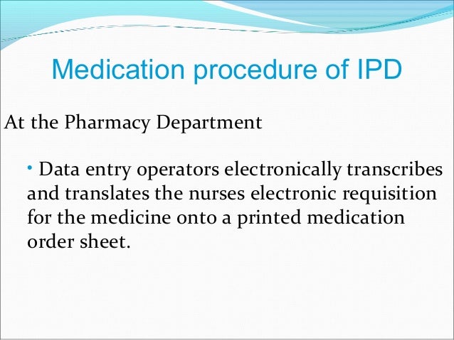 Remote Processing of Medication Orders data entry and transferring of medication order information; A pharmacy using remote order entry processing services is responsible for maintaining records of all orders entered into their information system ... Read Here